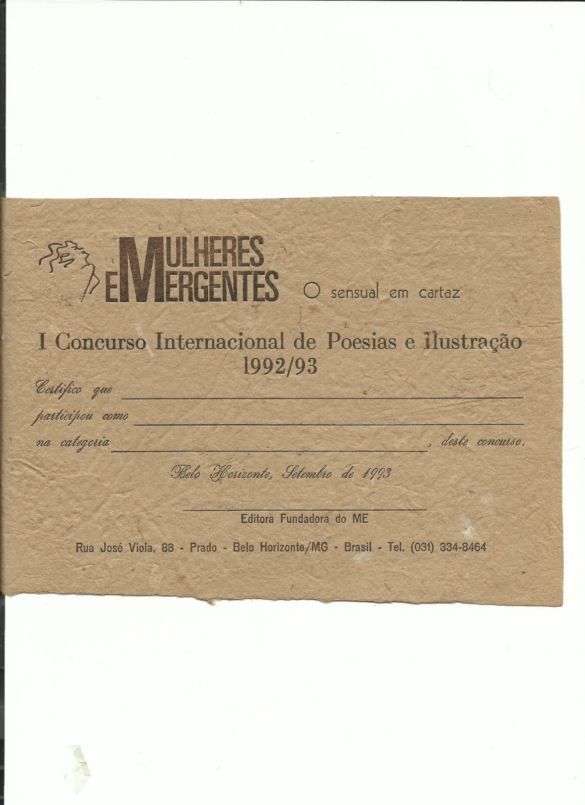 e aqui, o CERTIFICADO recebido por todos os vencedores do I Concurso. Muito chic, em papel artesanal: