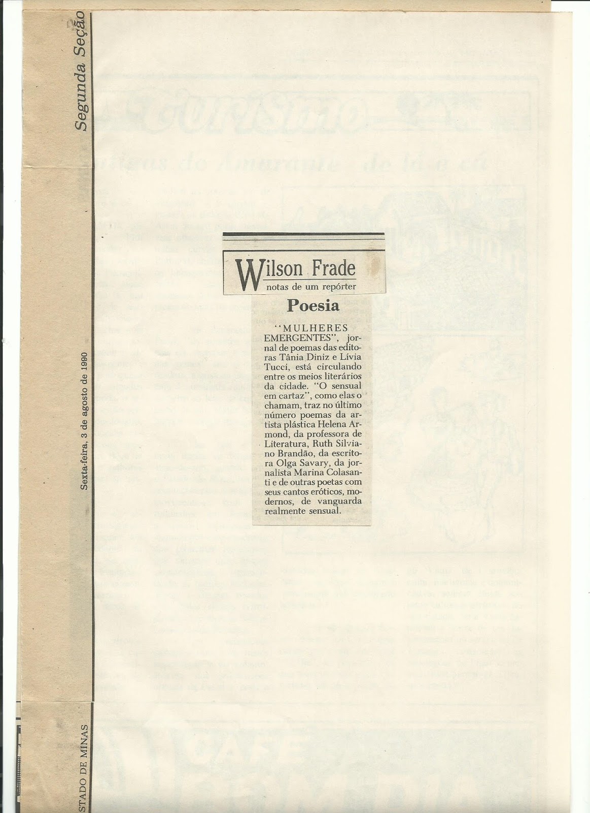de um jornal em São Paulo, coluna da escritora Maria Thereza Cavalheiro