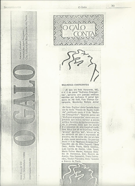 uma foto de nós duas,Tânia e Lívia, as editoras, e as atrizes Ruth Rangel e Amanda Vargas, que apresentaram poemas ME no lançamento do número Zero, no auditório do BDMG, na rua da Bahia, 1.600, em 24 de novembro de 1989.