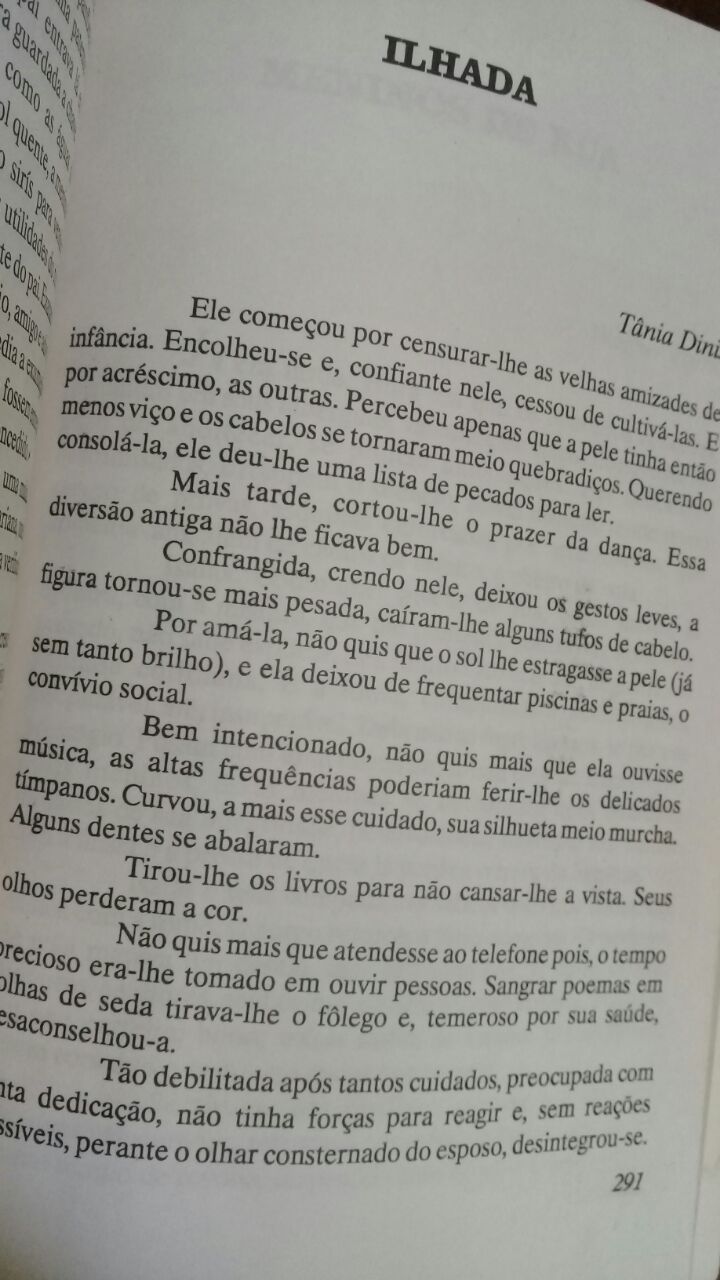 Ele começou por censurar-lhe as velhas amizades de infância. Encolheu-se e, confiante nele, cessou de cultivá-las. E por acréscimo, as outras. Percebeu apenas que a pele tinha então menos viço e os cabelos se tornaram meio quebradiços.