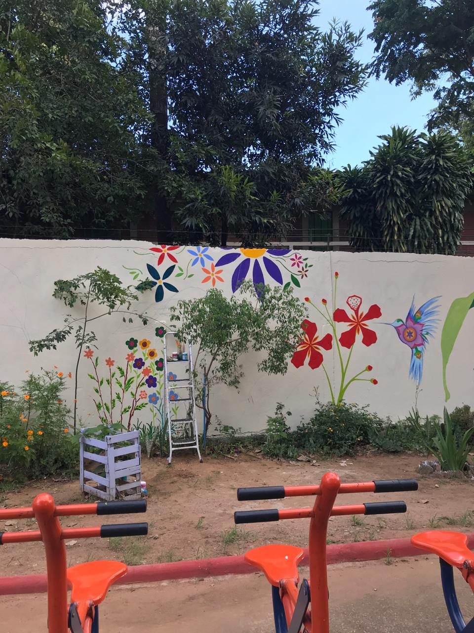Flores da Anacarol, no muro da praça, e meu poeminha, pra alegrar: